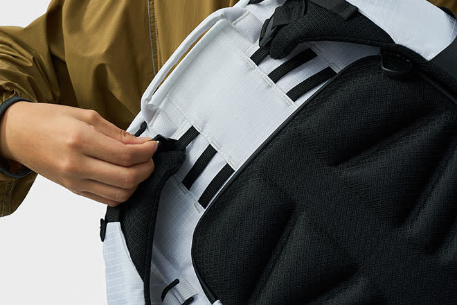 Symbio Harness System: self-developed dynamic back panel for ergonomic support & airflow